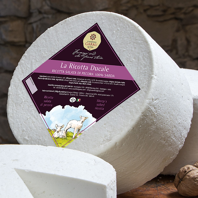 La Ricotta Ducale Salata segue lo stesso procedimento di produzione della ricotta fresca, ma prima di essere messa in commercio viene pressata, salata e stagionata. La quantità di sale utilizzato è abilmente dosata per evitare che nasconda sapore ed aromi ma, allo stesso tempo, permetterne la perfetta conservazione. Il sale che il Caseificio Garau utilizza da sempre per la ricotta salata e per tutti i formaggi è il pregiatissimo sale della Sardegna. La stagionatura può variare da 10 giorni a un mese; il peso medio per forma è intorno ai 2 kg. La ricotta salata è usata prevalentemente grattugiata, sulla pasta, in particolare sui malloreddus (i tipici gnocchetti sardi), ma è apprezzata anche da sola come antipasto e/o abbinata ai dolci sardi.