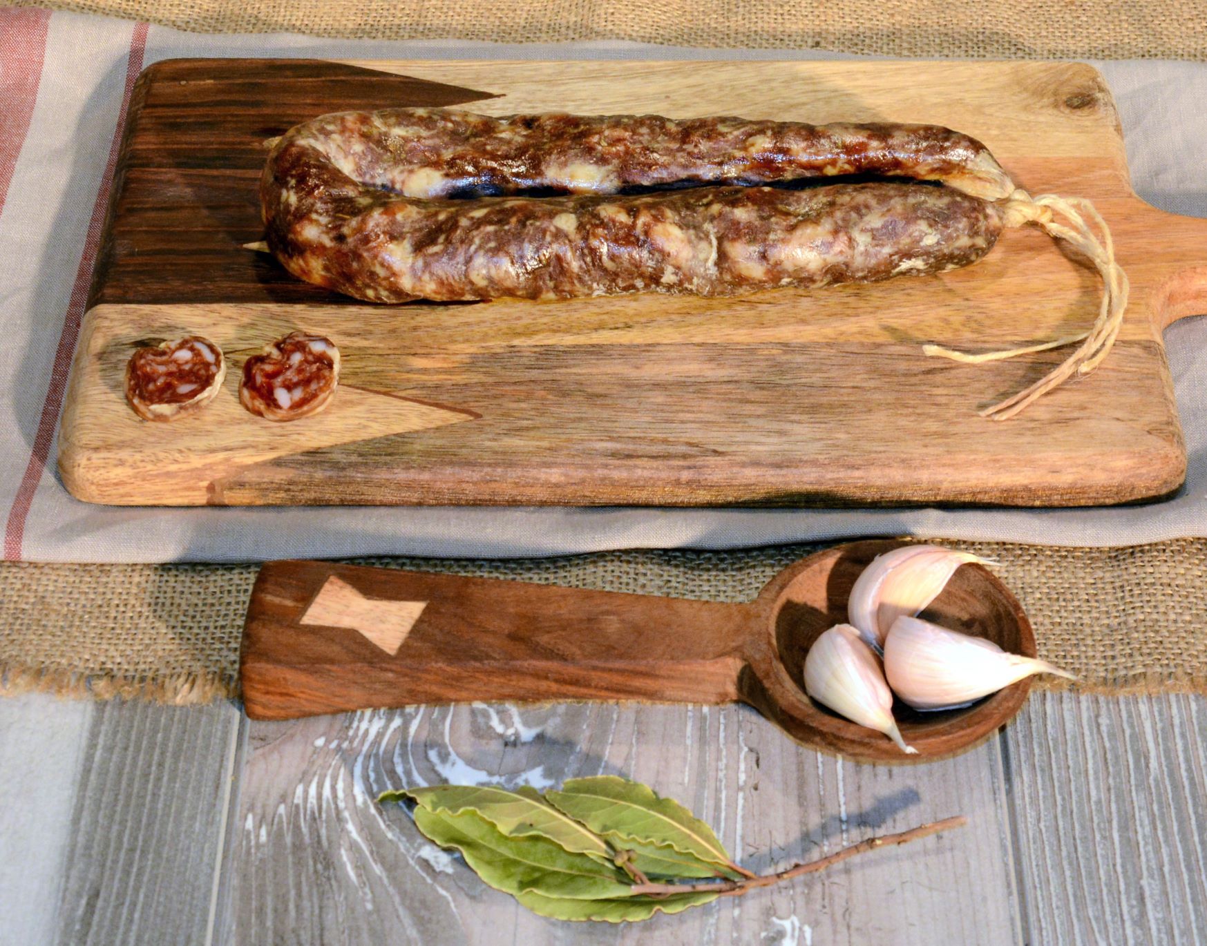 La salsiccia stagionata “la cervellata” ha una forma a ferro di cavallo ed è realizzata senza alcun tipo di conservante o additivo; viene condita solo con sale marino artigianale, spezie ed una piccola percentuale di fegato del maiale. Prezzo riferito ad un pezzo da 0,350 grammi circa.
