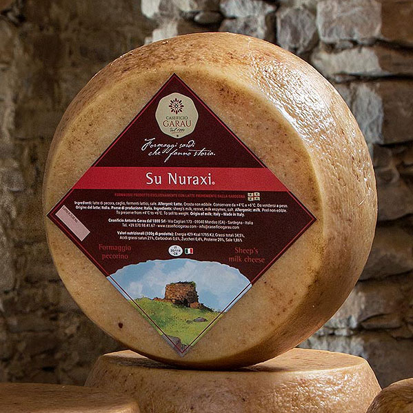 Le più antiche tecniche casearie, tramandate con orgoglio di generazione in generazione, in un formaggio dall’anima “Sapiente”. Pecorino da tavola e da grattugia a pasta compatta, scalzo bombato, dal gusto deciso, leggermente piccante, aromatico con note sensoriali speziate e tostate, prodotto con latte ovino fresco della Sardegna. “Su Nuraxi” della nobile arte casearia del Caseificio Garau dal 1880.